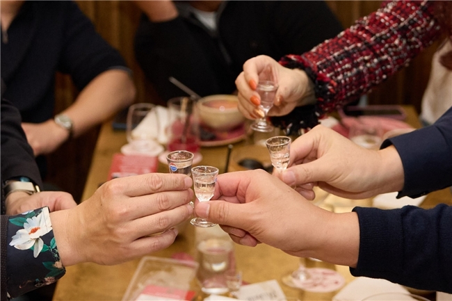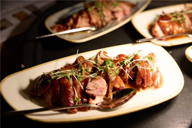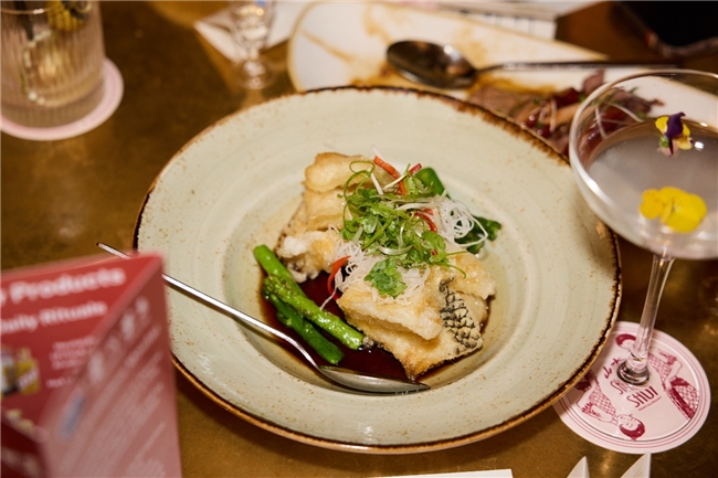 随后,正式品鉴环节在前菜登场时拉开序幕。本次品鉴酒为茅台最具代表性的53度飞天茅台,作为中国酱香型白酒的标志性产品,以“酱香突出、幽雅细腻、酒体醇厚、回味悠长”而广为赞誉。在专业讲解引导下,嘉宾们更深入了解飞天茅台的独特风味来源:其酿造依托贵州茅台镇独特的微生态环境,通过高温制曲、高温堆积发酵、九次蒸煮和长达数年的多轮次贮存而形成。基酒需陈放五年以上,部分调味酒甚至达到更长窖藏时间,使其酒体层次分明、香气和谐统一。这些深入解析不仅提升嘉宾的品饮体验,也强化了他们对茅台品质价值的认知。