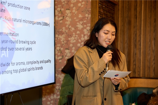 活动伊始,嘉宾陆续抵达现场,迎宾饮品与小食营造出轻松温馨的氛围,使来宾在入座之初便感受到活动的仪式感与精致体验。随着现场气氛逐渐热络,Jazz Trading代表进行品牌宣讲,从茅台酒的发展历程、酱香工艺的独特性到茅台产品进行系统讲解,使嘉宾在品鉴前对茅台文化有了全面认识。宣讲内容不仅涵盖茅台酒的酿造工艺与自然环境优势,也包括品牌背后的文化价值与中国白酒在全球市场的地位,引起多位国际宾客的浓厚兴趣,为后续的产品品鉴及购买意愿奠定良好基础。